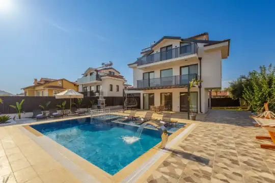 Villa Fullmoon 1 ; Fethiye Hisarönü bölgesinde bulunan villamız lüks ve modern bir mimariye sahiptir. 3 yatak odasından oluşup 6 kişi konaklama kapasitesine sahip olan villamızın en üst katında ki master süit yatak odasın da jakuzi yer almaktadır. Geniş bahçeye sahip villamız bahçe içerisinde bulunan sizlere özel havuzu, salıncak, hamak ve barkeküsü ile harika bir tatil deneyimi sunmaktadır.