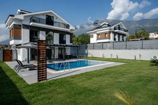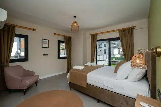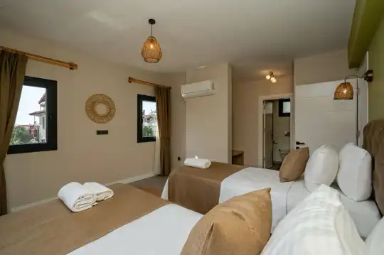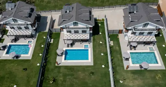 Toplamda 3 yatak odasıyla 6 kişiye kadar konaklama kapasitesine sahip olan villamız, geniş aileler ve arkadaş grupları için mükemmel bir tercihtir. Şık ve modern bir şekilde döşenmiş olan villamızda her türlü konfor düşünülmüştür. Havuz terasında güneşlenebilir, bahçe masasında harika yemekler yiyebilir ve salıncakta keyifli zaman geçirebilirsiniz.