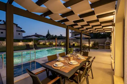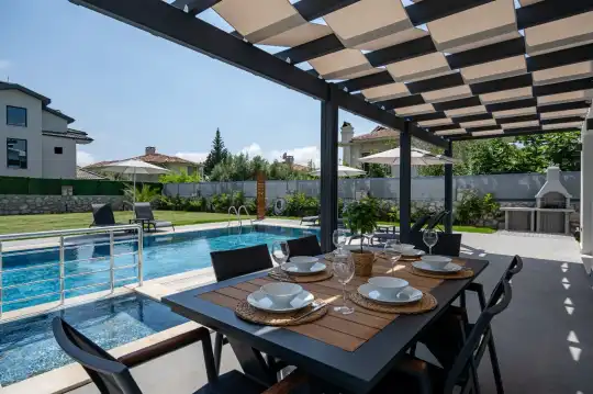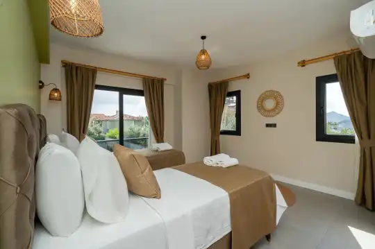 Toplamda 3 yatak odasıyla 6 kişiye kadar konaklama kapasitesine sahip olan villamız, geniş aileler ve arkadaş grupları için mükemmel bir tercihtir. Şık ve modern bir şekilde döşenmiş olan villamızda her türlü konfor düşünülmüştür. Havuz terasında güneşlenebilir, bahçe masasında harika yemekler yiyebilir ve salıncakta keyifli zaman geçirebilirsiniz.