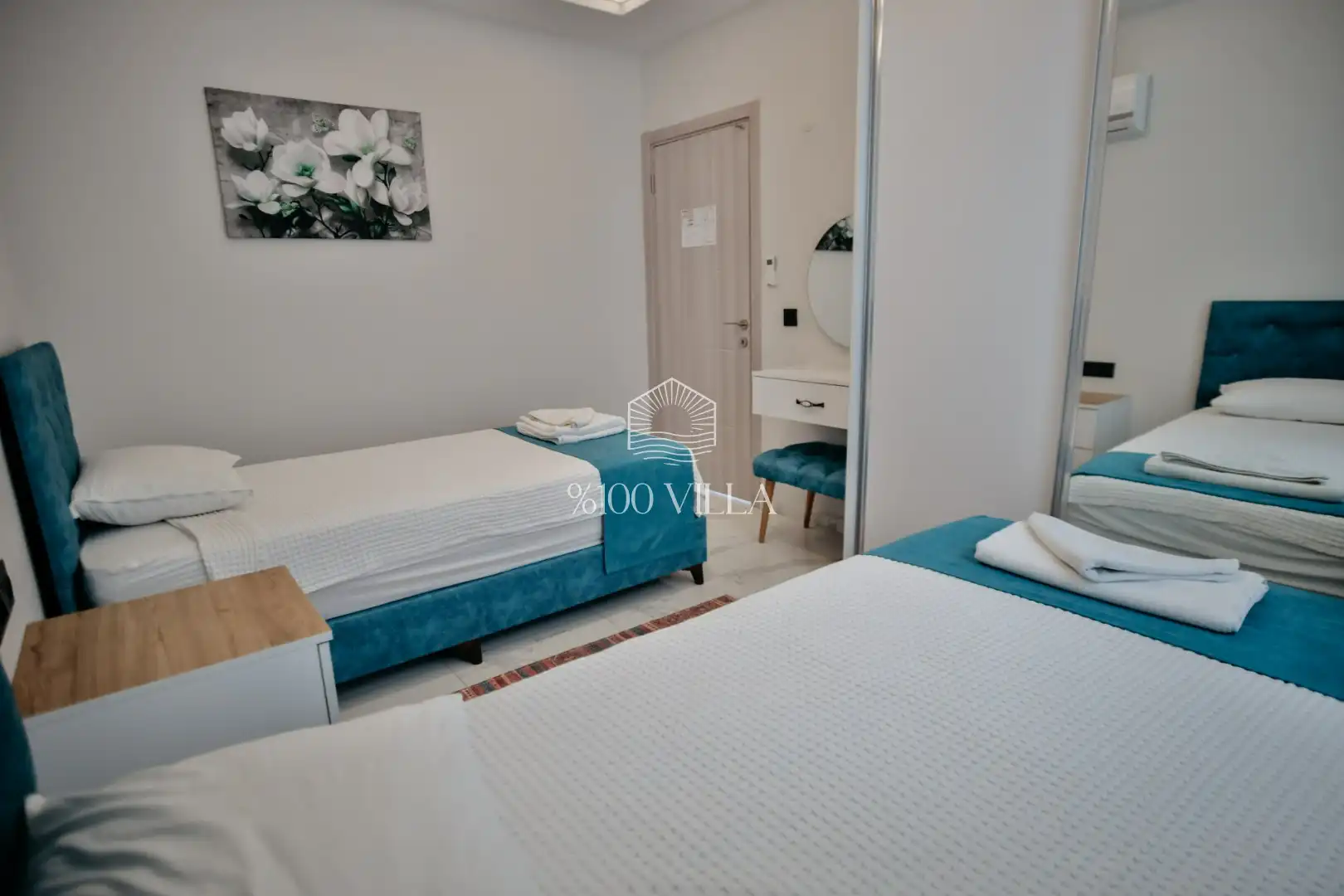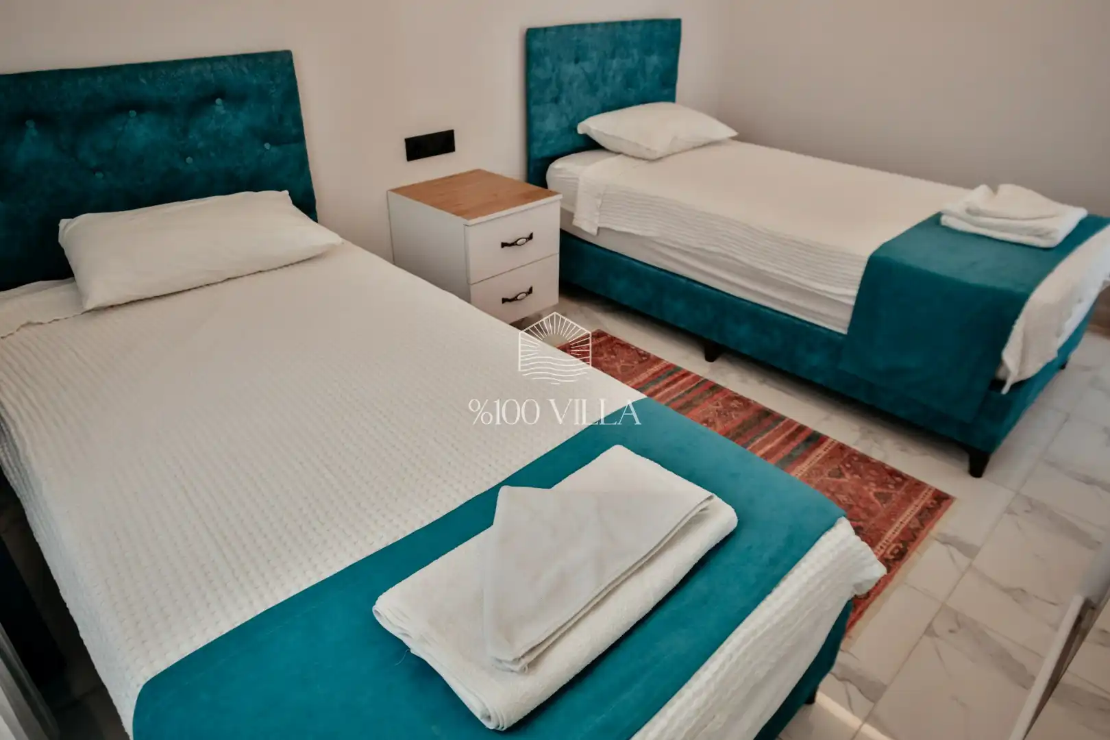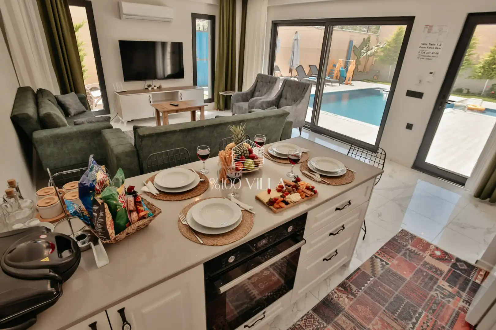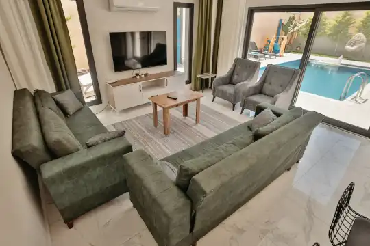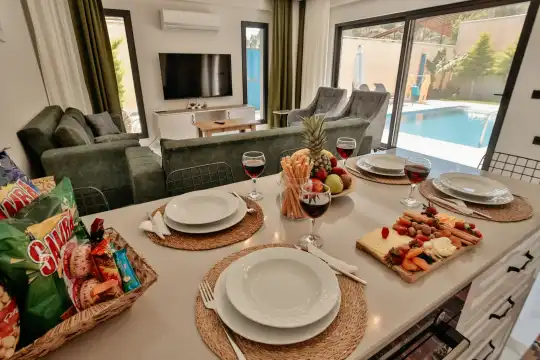Villa Gemini 4 kişilik kapasiteye sahip villada 2 yatak odası yer alıyor. Açık mutfağı ve kendine ait bahçesindevar. Mutfağında bulaşık makinesi, buzdolabı, ankastre fırın, ve mutfakta ihtiyaç olan hemen hemen bütün gereçler bulunuyor. Villanın bahçesinde özel havuzun yanında bir de çocuk havuzu mevcut. Barbekü, masa, sandalyeler, şezlonglar ve şemsiyeler bahçe keyfini sınırsız yaşamanıza imkan tanıyor. Salonunda oturma grubu, televizyon, eşyalar bulunurken, tüm odalar için ayrı klima imkanı var.