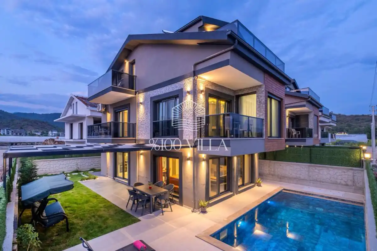 Muğla’nın gözde tatil destinasyonlarından Fethiye / Çalış bölgesinde konumlanan Villa Gök 1, özel havuzlu kiralık villalar arasında öne çıkan konforlu bir tatil seçeneğidir. Geniş aileler ve arkadaş grupları için ideal olan villamız, 4 yatak odası ve 8 kişilik konaklama kapasitesi ile ferah ve keyifli bir tatil imkânı sunmaktadır. 2023 yılında modern mimari ve şık iç tasarım anlayışıyla hazırlanmış olan villa, sessiz ve sakin bir konumda yer alarak misafirlerine dinlendirici bir tatil deneyimi sağlar.