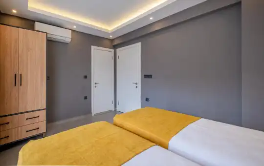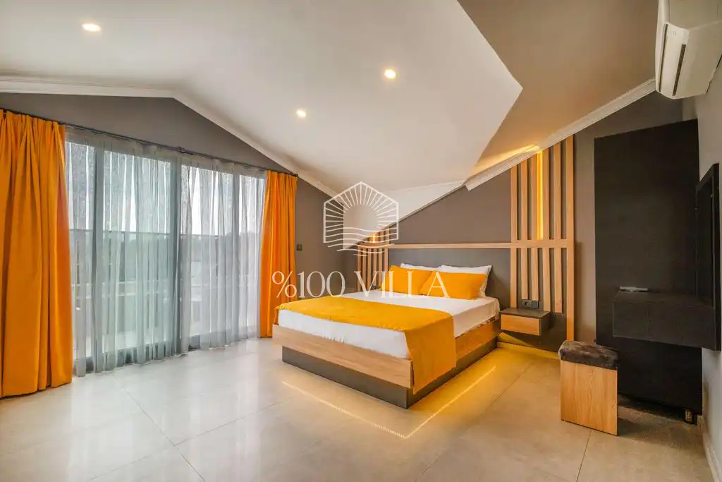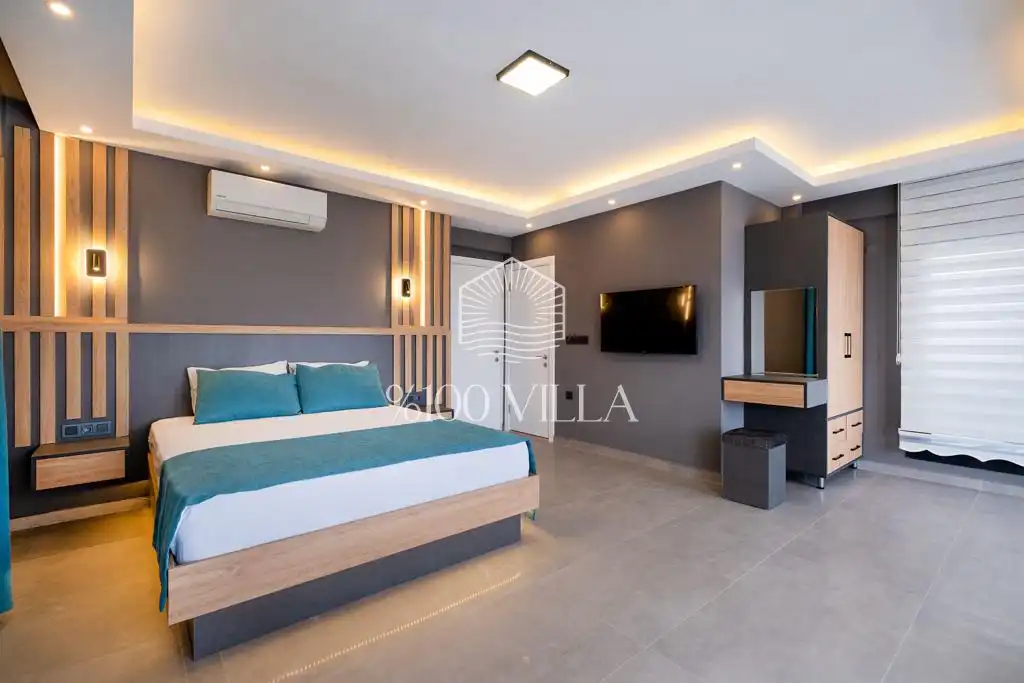 Villa Gök 1’in iç mekânında toplam 4 yatak odası bulunmaktadır. İki yatak odasında çift kişilik yatak, diğer iki yatak odasında ise ikişer adet tek kişilik yatak yer almaktadır. Tüm odalarda klima, elbise dolabı, komodin ve özel banyo/WC gibi konforlu detaylar düşünülmüştür. Modern tasarıma sahip açık plan salon ve mutfak alanı, rahat oturma grubu, TV, klima, yemek masası ve havuz terasına doğrudan çıkış imkânı sunarak keyifli bir yaşam alanı oluşturur.