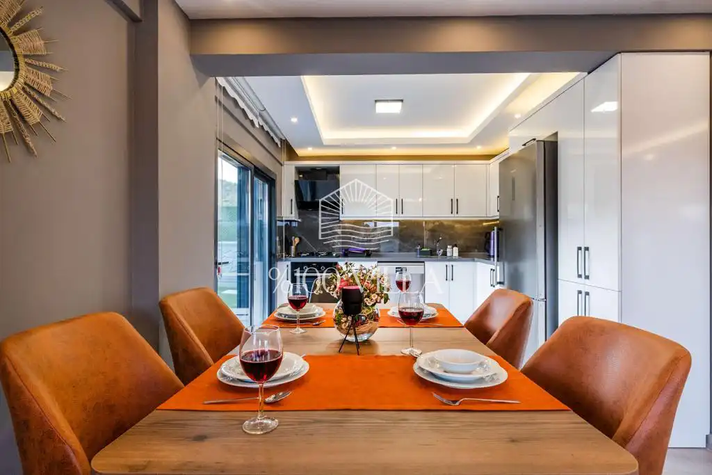 Villanın tam donanımlı mutfağında buzdolabı, ankastre ocak ve fırın, mikrodalga fırın, tost makinesi, çamaşır makinesi ve ihtiyaç duyabileceğiniz temel mutfak ekipmanları yer almaktadır. Bu sayede tatiliniz boyunca ev konforunda bir konaklama deneyimi yaşayabilirsiniz.