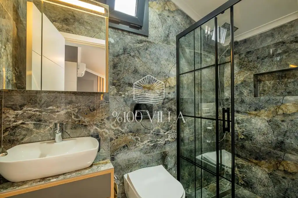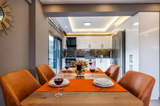 Villanın tam donanımlı mutfağında buzdolabı, ankastre ocak ve fırın, mikrodalga fırın, tost makinesi, çamaşır makinesi ve ihtiyaç duyabileceğiniz temel mutfak ekipmanları yer almaktadır. Bu sayede tatiliniz boyunca ev konforunda bir konaklama deneyimi yaşayabilirsiniz.