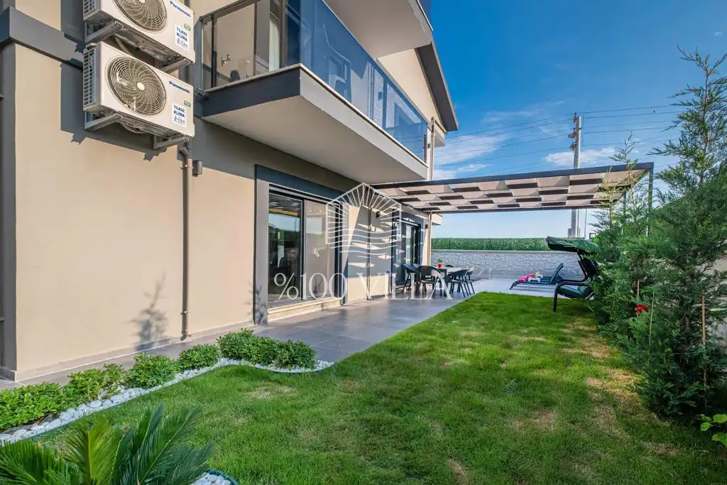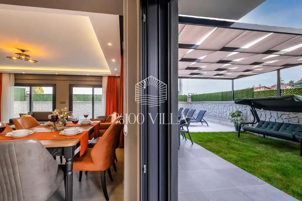 Villanın dış alanında yaklaşık 7 x 3,5 metre ölçülerinde özel yüzme havuzu bulunmaktadır. Geniş havuz terasında şezlonglar, şemsiye, veranda oturma alanı, bahçe yemek masası, barbekü / mangal alanı ve köşk (kamelya) gibi detaylar yer alır. Bu alan, misafirlerin gün boyu keyifli vakit geçirebileceği şekilde tasarlanmıştır. Ayrıca Villa Gök 3'ün havuz ve bahçe alanı korunaklı olup dışarıdan görünmemektedir, bu da özellikle muhafazakâr aileler için avantaj sağlamaktadır.
