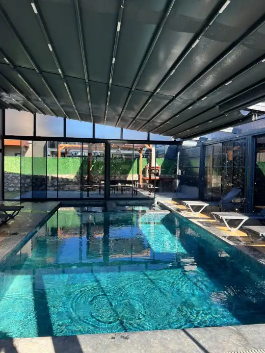 Not: Villamızın dış havuzunda açılır kapanır sistem mevcuttur. Havuz ısıtma ücreti 01 Nisan - 30 Ekim tarihleri arasında günlük 1000 TL'dir. Diğer aylarda havuz ısıtma ücreti değişiklik gösterebilir.