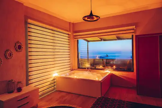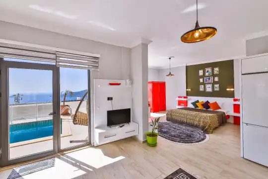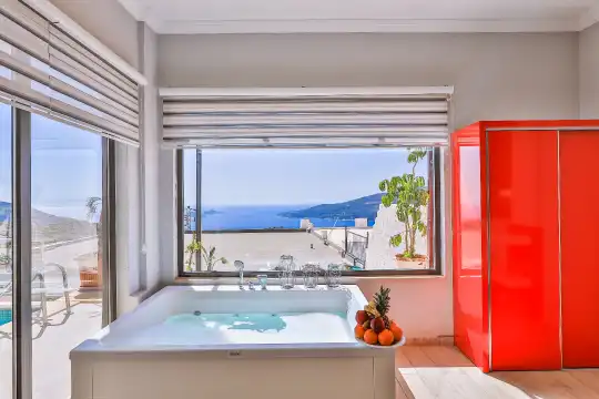 Villamız Kalkan Kördere bölgesindekonumlanmış olan kiralık villamızdır. Muhteşem bir deniz manzarasına sahip olan villamız havuz terası kısmi korunaklı yapısından dolayı ve balayı çiftleri için oldukça idealdir. Sevdiklerinizle birlikte günbatımına karşı içeceklerinizi yudumlayıp manzaranın tadını çıkarabilirsiniz. Villamızda bulunan jakuzi ise rahatlayıp tüm yılın yorgunluğunu üzerinizden atmanıza yardımcı olacaktır.