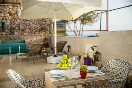 VillamızKalkan Kördere bölgesinde konumlanmış olan kiralık villamızdır. Muhteşem bir deniz manzarasına sahip olan villamız havuz terası kısmi korunaklı yapısından dolayı ve balayı çiftleri için oldukça idealdir. Sevdiklerinizle birlikte günbatımına karşı içeceklerinizi yudumlayıp manzaranın tadını çıkarabilirsiniz. Villamızda bulunan jakuzi ise rahatlayıp tüm yılın yorgunluğunu üzerinizden atmanıza yardımcı olacaktır.
