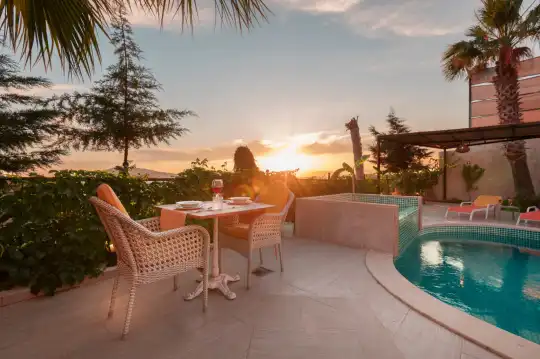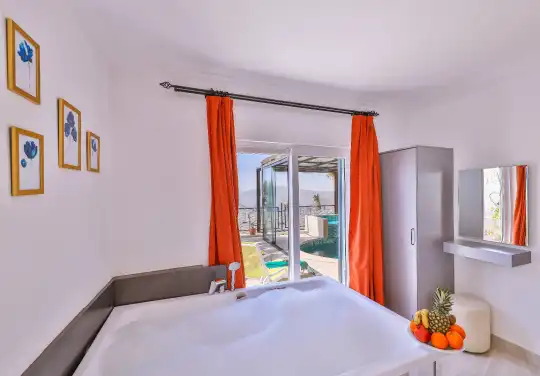 Villamız Kalkan Kördere bölgesinde konumlanmış olan kiralık villamızdır. Muhteşem bir deniz manzarasına sahip olan villamız havuz terası kısmi korunaklı yapısından dolayı ve balayı çiftleri için oldukça idealdir. Sevdiklerinizle birlikte günbatımına karşı içeceklerinizi yudumlayıp manzaranın tadını çıkarabilirsiniz. Villamızda bulunan jakuzi ise rahatlayıp tüm yılın yorgunluğunu üzerinizden atmanıza yardımcı olacaktır.