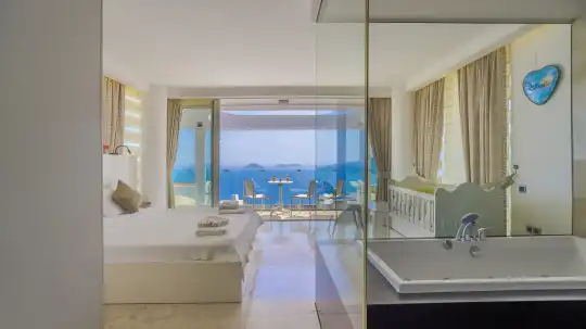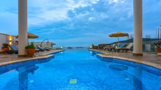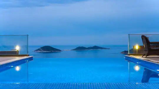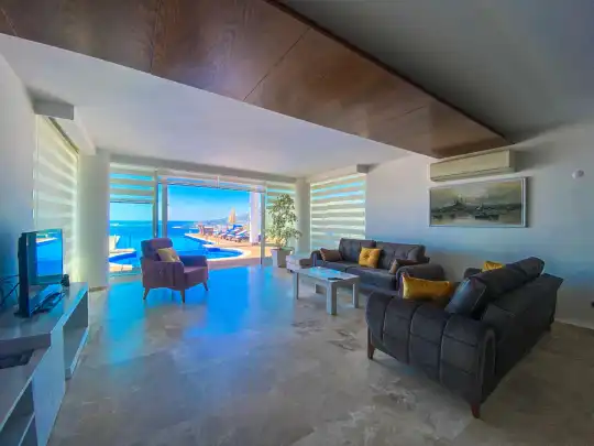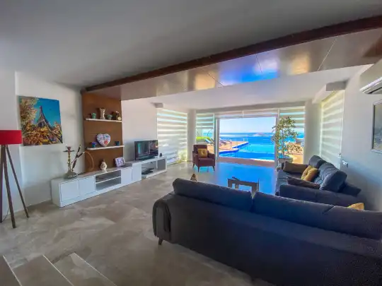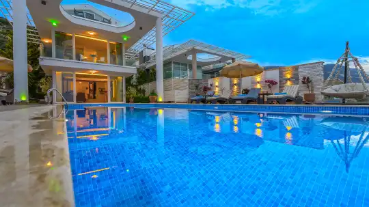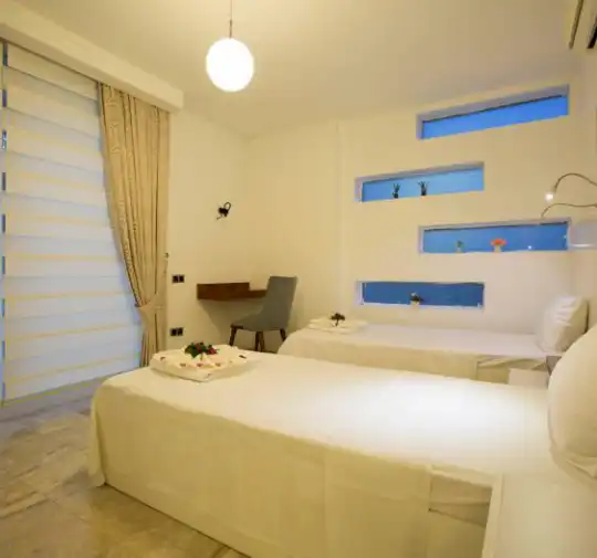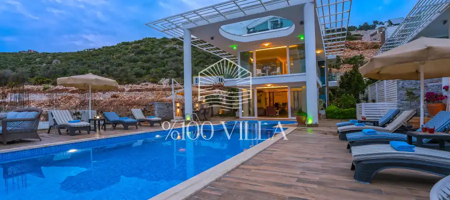 Villa Hillside 3, Eşsiz güzellilteki deniz ve doğa manzarasına ev sahipliği yapan Kalkan Kalamar Koyu’nda yer alan villamız 4 yatak odalı ve 8 kişilik konaklama kapasitesine sahiptir. Kalabalık aileler ve arkadaş gruplarının rahatlıkla konaklayabileceği villamız plaj, market, restorant ve eğlence mekanlarına yürüme mesafesindedir. Araçsız bir yaz tatili planlayan misafirlerimiz için Villa Kayra oldukça idealdir. Villamızın manzaralı bahçesinde unutulmaz ve eğlenceli vakitler geçirebileceğiniz havuz, şezlong, oturma köşesi, gün batımı eşliğinde akşam yemeklerinizi yiyebileceğiniz yemek masası yer almaktadır. Denizin maviliği, doğanın yeşilliği ve gökyüzünün kızıllığı ile villadan çıkmak istemeyeceksiniz. Modern ve zevkle döşenmiş villamızın yere dek uzanan pencreleri sayesinde tüm odalarından manzarayı kesintisiz seyredebilirsiniz. Villamızın şık dekore edilmiş yatak odalarından birinde jakuzi bulunmaktadır.