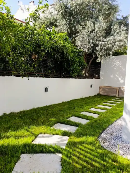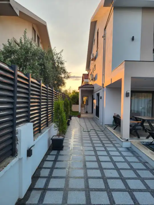 Bahçede oturma grubu, yemek masası, 2 kişilik arka bahçe takımı, damla salıncak, 2 adet güneş şemsiyesi, 4 adet şezlong, barbekü ve otopark alanı bulunmaktadır.