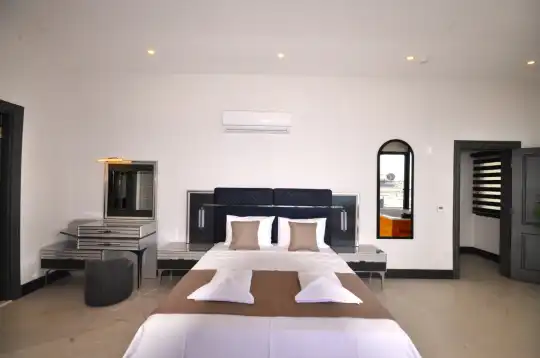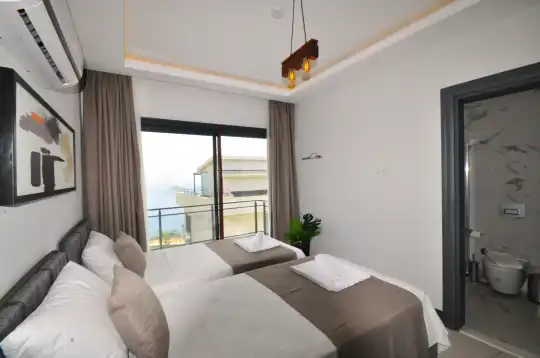 - Dördüncü yatak odası: Çift kişilik yatak , sauna, hamam, jakuzi ve deniz manzaralı teras ile özel bir konfor alanı sunar.