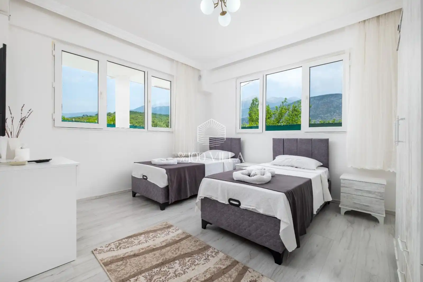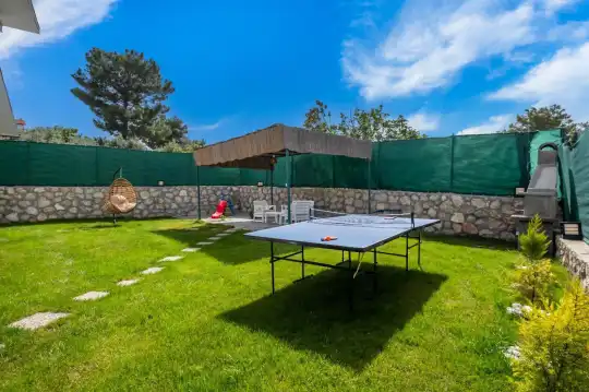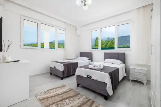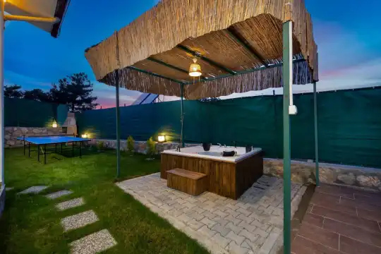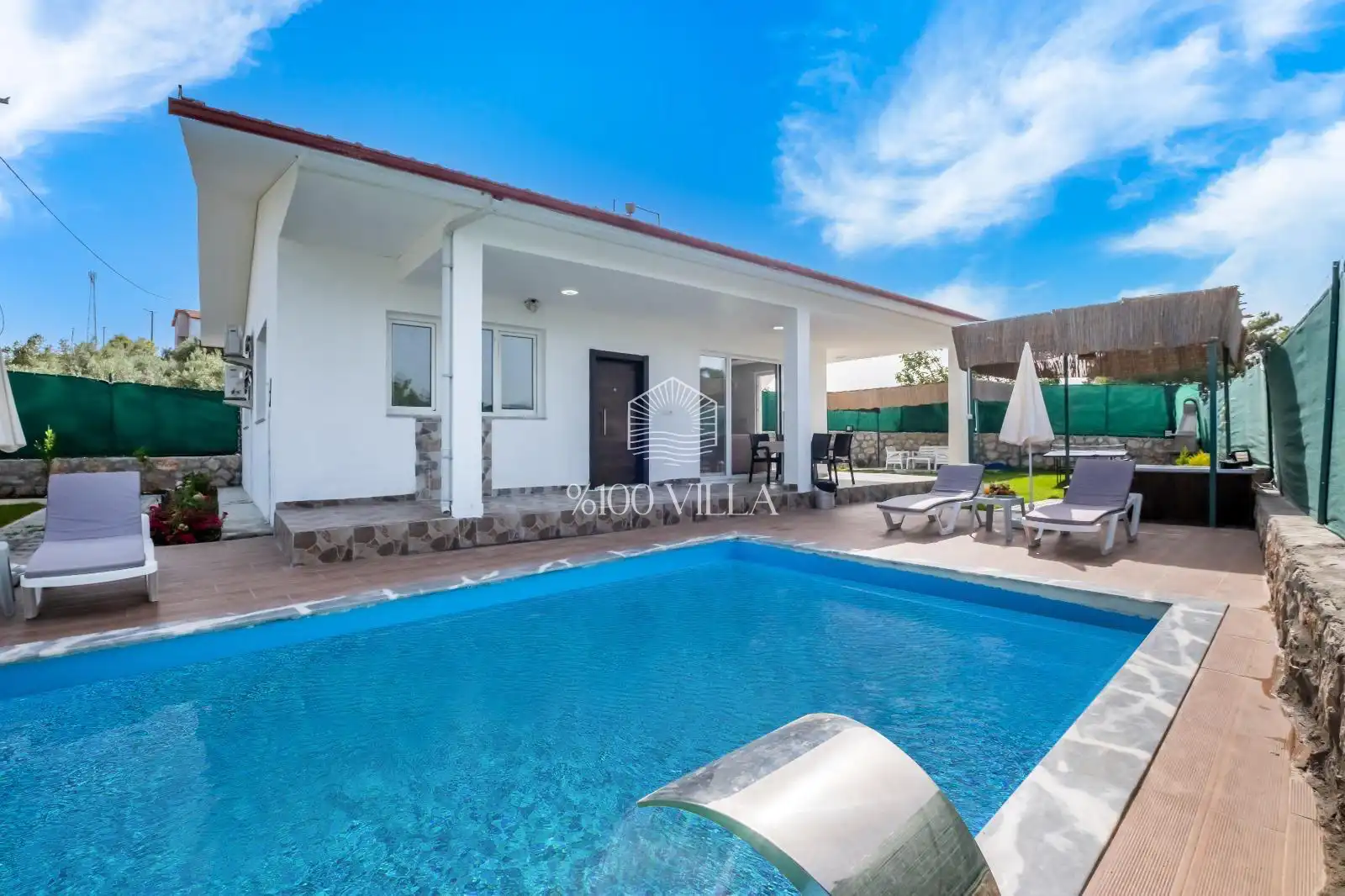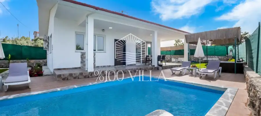 Toplam 2 yatak odasından oluşmuş, 4 kişi konaklama kapasitesine sahiptir. Oldukça şık ve modern bir şekilde döşenmiş olan villamızda misafirlerimiz için her şey düşünülmüştür. Havuz terasında bulunan şezlonglarda güneşlenebilir, bahçe masasında muhteşem yemekler yiyebilir, salıncakta sallanıp keyifli dakikalar geçirebilirsiniz.