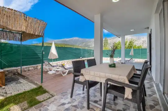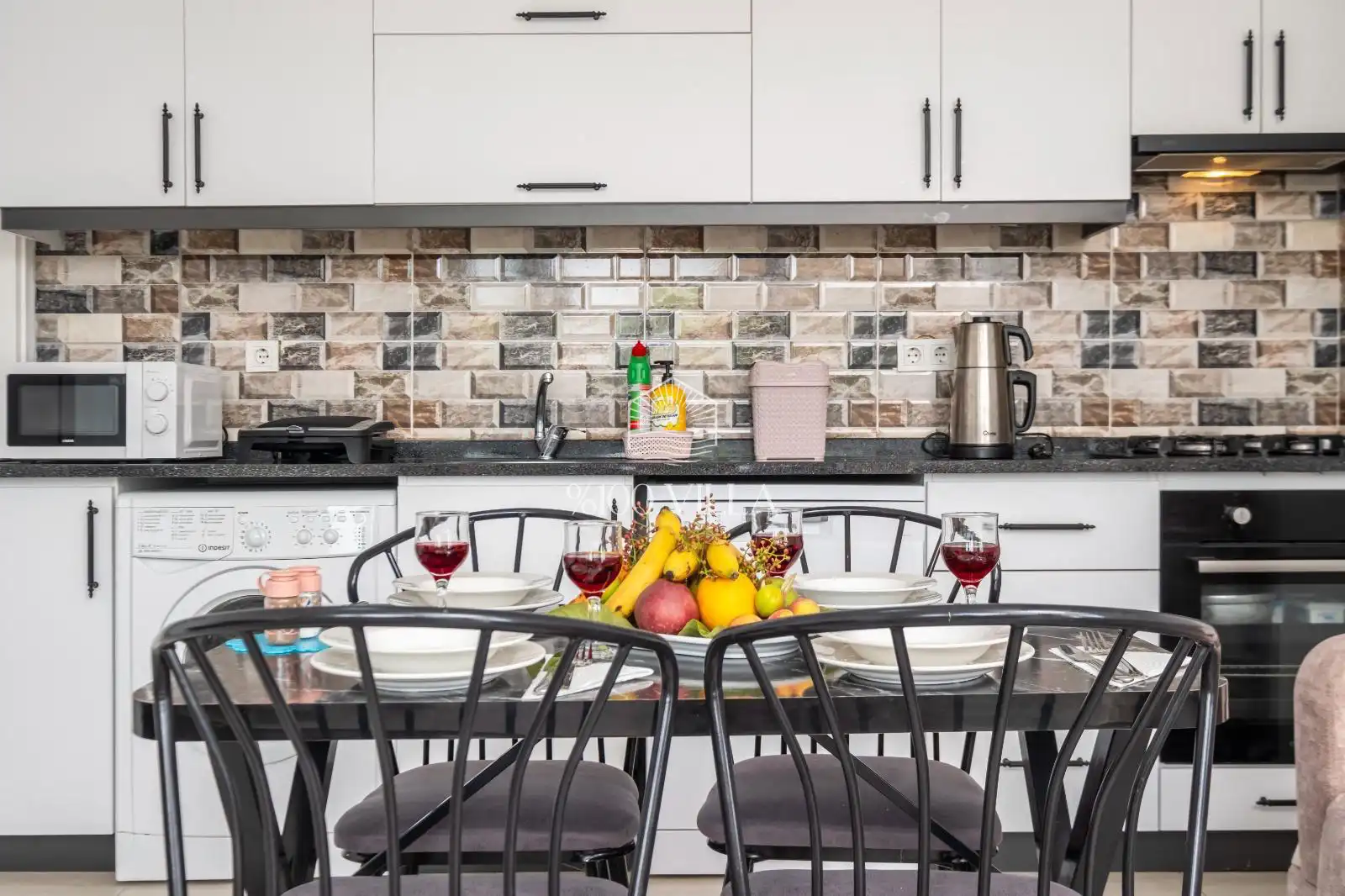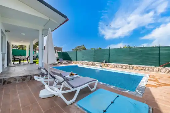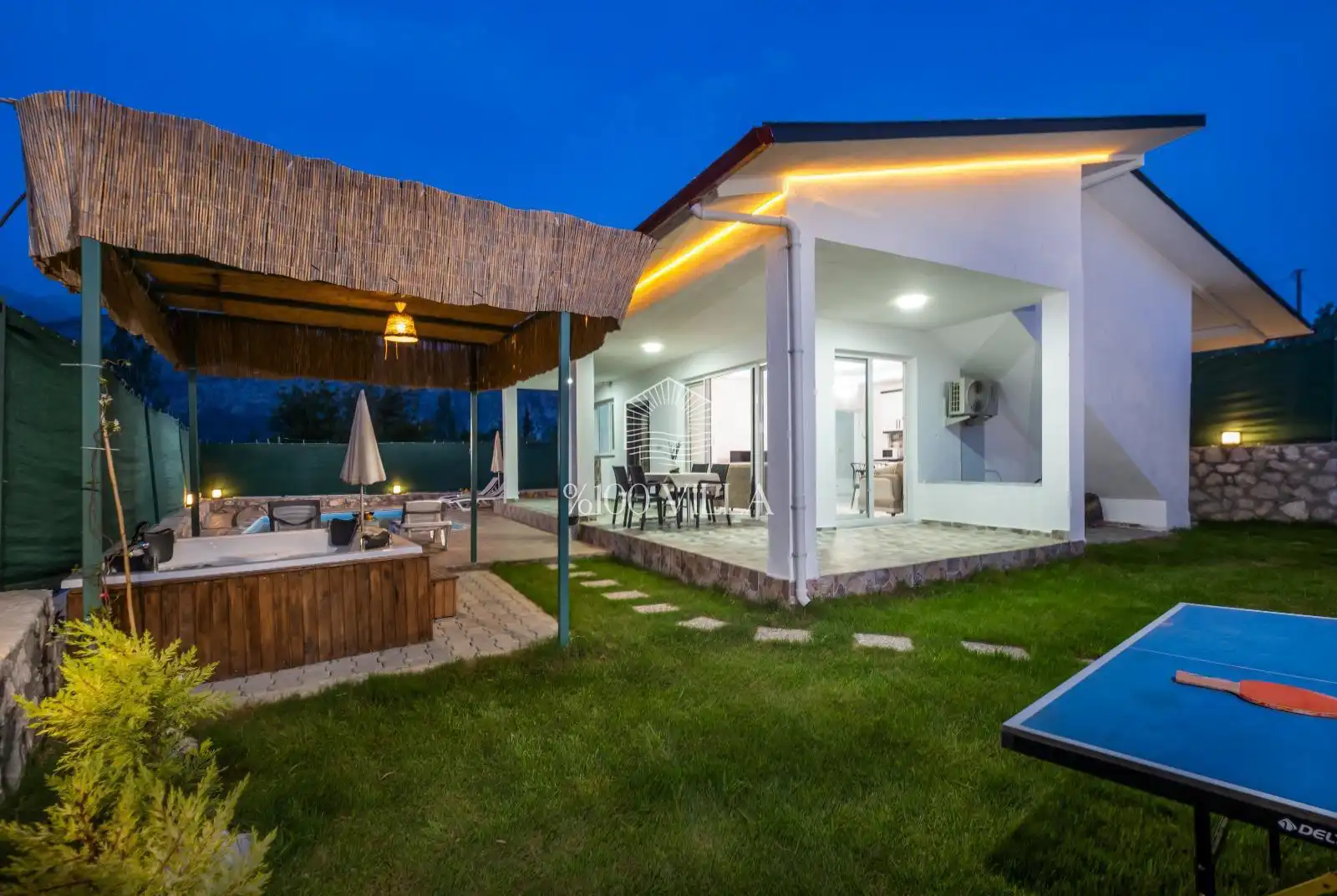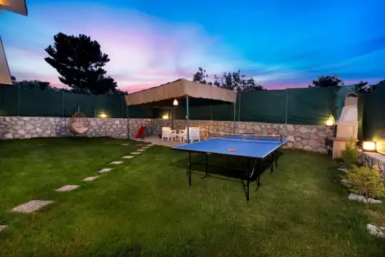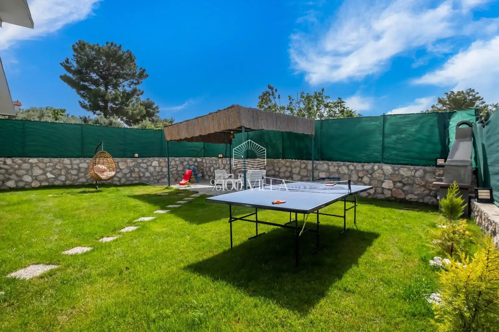 Toplam 2 yatak odasından oluşmuş, 4 kişi konaklama kapasitesine sahiptir. Oldukça şık ve modern bir şekilde döşenmiş olan villamızda misafirlerimiz için her şey düşünülmüştür. Havuz terasında bulunan şezlonglarda güneşlenebilir, bahçe masasında muhteşem yemekler yiyebilir, salıncakta sallanıp keyifli dakikalar geçirebilirsiniz.