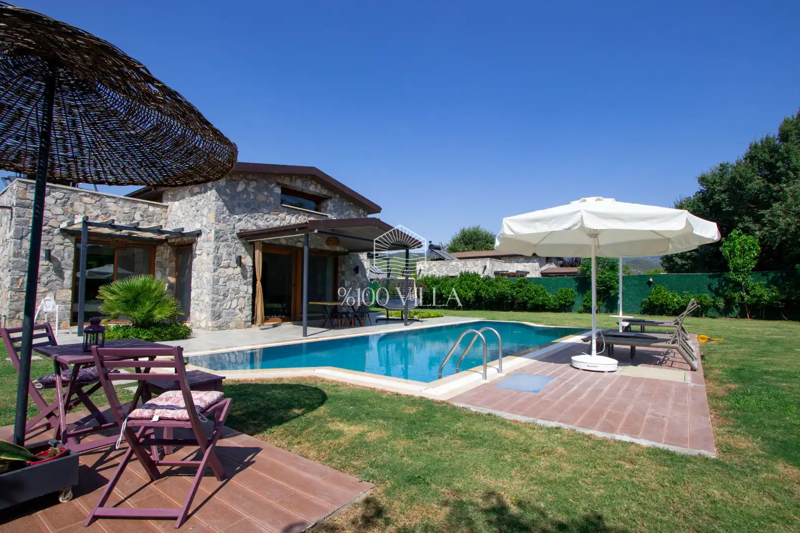 Villa Kaia 1, Fethiye'nin Kayaköy ilçesinde bulunan 2 yatak odalı 4 kişi kapasiteli villamız, paraşüt sporlarının yapıldığı, dünyaca ünlü Babadağ manzarası, müze niteliğine sahip yamaca dizilmiş meşhur Kayaköy evleri ile bütünleşen, Likyalılarda “ışık ve güneş diyarı” olarak bilinen Ölüdeniz'e 9 km, gemiler koyuna 8 km, en iyi uzun yürüyüş Rotası olarak bilinen Likya yürüyüş yolu başlangıcı olan Hisarönüne 4.5 km mesafede olup yüksek Tavanları ile Ferah, modern taş yapısı, 500 m2 geniş bahçeleri ile huzurlu bir tatil için sizleri bekliyoruz.