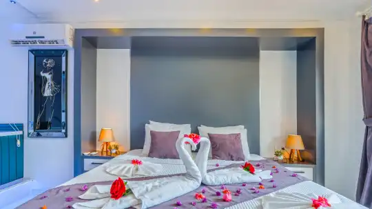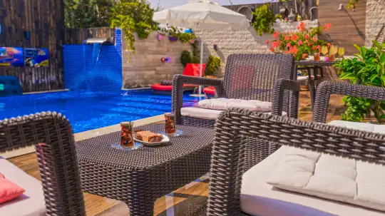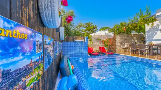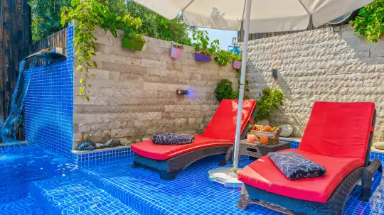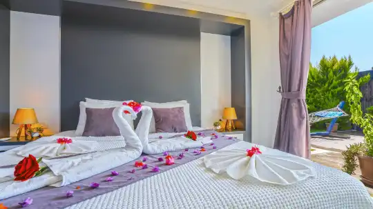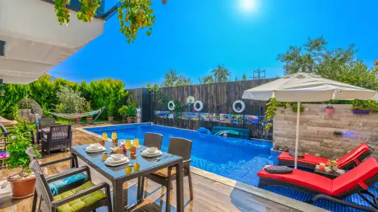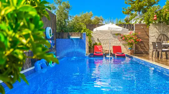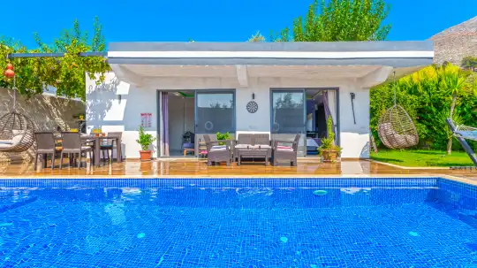 Villa Karamel, Kalkan Üzümlü Bölgesinde yer alan doğa içerisinde 1 yatak odalı 2 kişi konaklama kapasiteli kiralık villa. Villa Karamel in içerisi modern ve konforlu bir şekilde dizayn edilmiş olup aynı zamanda balayı çiftler için tasarlanmıştır. Villa Karamel ’ in havuz terası korunaklığı ile özel yüzme havuzu, langırt, salıncak, hamak, barbekü alanı, mini bahçesi ile yılın bütün yorgunluğunu atmak için güzel bir tatil imkanı sağlamaktadır.