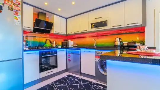 Mutfak : Evizinizin mutfağını aratmayacak Amerikan mutfak içerisinde buzdolabıü bulşaık makinesii çamaşır makinesi, ocak, fırın, su ısıtıcısı, tost makinesi, yemek masası, yemek takımı ve yemek pişirme araç gereçleri yer almaktadır.