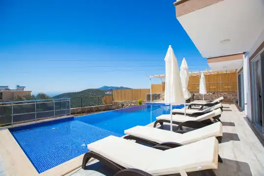 Muhteşem bir deniz manzarasına sahip olan villamız havuz terasının korunaklı yapısından dolayı muhafazakar aileler ve balayı çiftleri için oldukça idealdir. Sevdiklerinizle birlikte günbatımına karşı içeceklerinizi yudumlayıp manzaranın tadını çıkarabilirsiniz. Villamızda bulunan jakuzi ise rahatlayıp tüm yılın yorgunluğunu üzerinizden atmanıza yardımcı olacaktır.