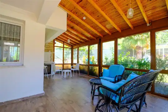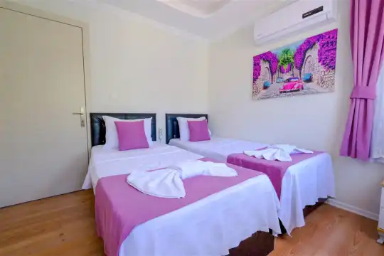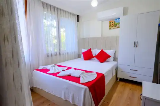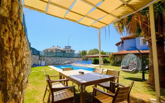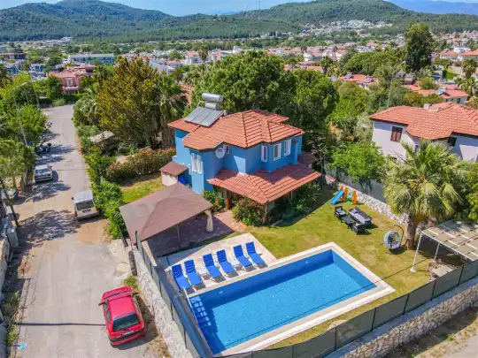Villa Şans Türkiye’nin ünlü tatil beldesi Ölüdeniz Ovacık mevkiinde bulunmakta olup, 4 yatak odası bir açık mutfak ve salona sahiptir. 8 kişilik yatak kapasitesi ile kalabalık aile grupları için oldukça uygun bir villamızdır. Geniş bir veranda, yaklaşık 200 m2 lik çim alanıyla geniş bir bahçe ,bahçesinde çocukların da unutulmadığı çocuk parkı ,özel havuzu ve otoparkı bulunmaktadır. Merkezi konumda olan, özel yüzme havuzlu ve geniş bahçeli villamızda, misafirlerimiz huzurlu bir tatil deneyimi imkanı bulmaktadır. Villanın bahçesinde küçük çocuklarınızın sıkılmadan vakit geçirebilmesi için salıncak, kaydırak vb. oyun gereçleri bulunmaktadır.