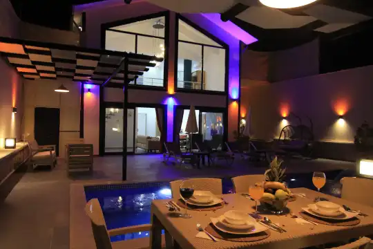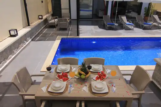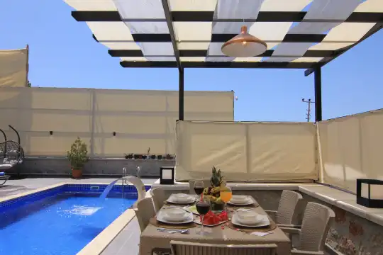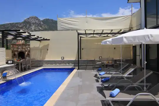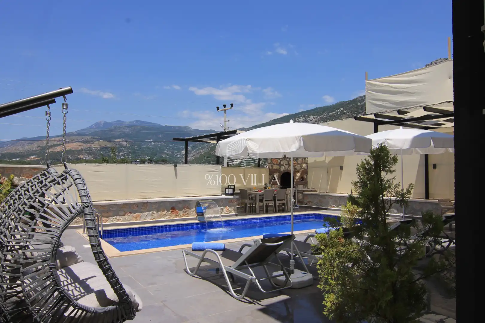 Villamız Kalkan Akbel mevkiinde konumlanan şirin bahçeli havuzu oldukça korunaklı villamızdır. Müstakil yüzme havuzu dışarıya karşı oldukça korunaklı olduğu için tatilde gözlerden uzak olmak isteyen misafirlerimiz rahat edeceklerdir.