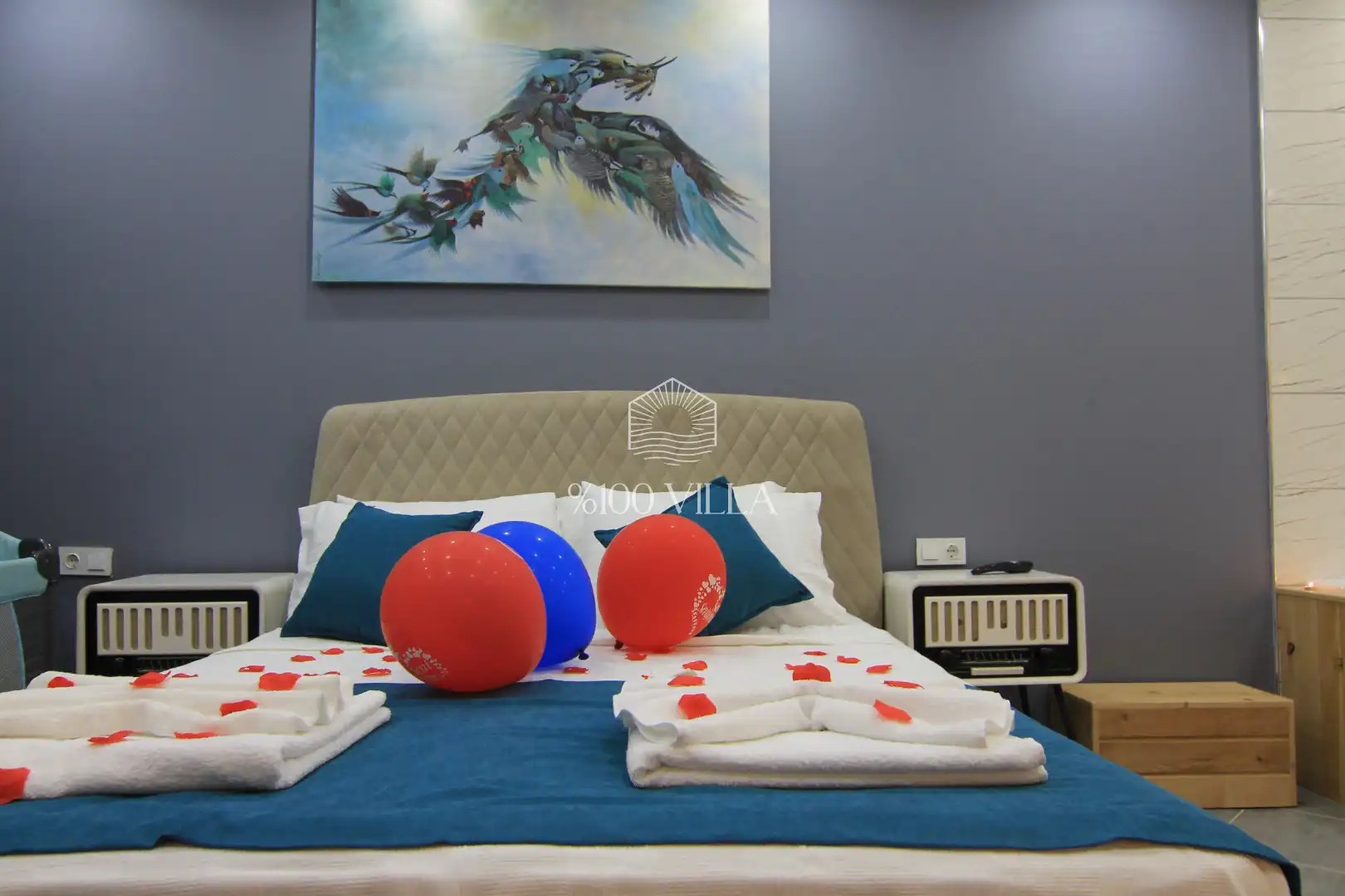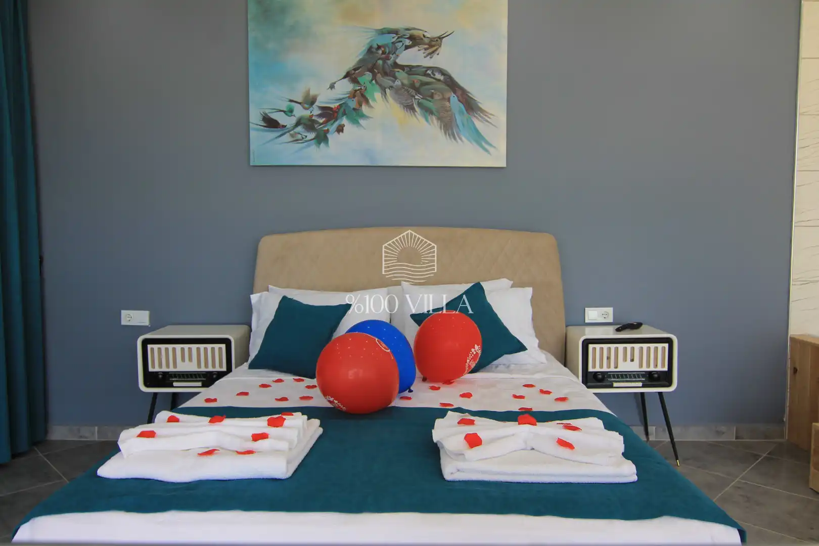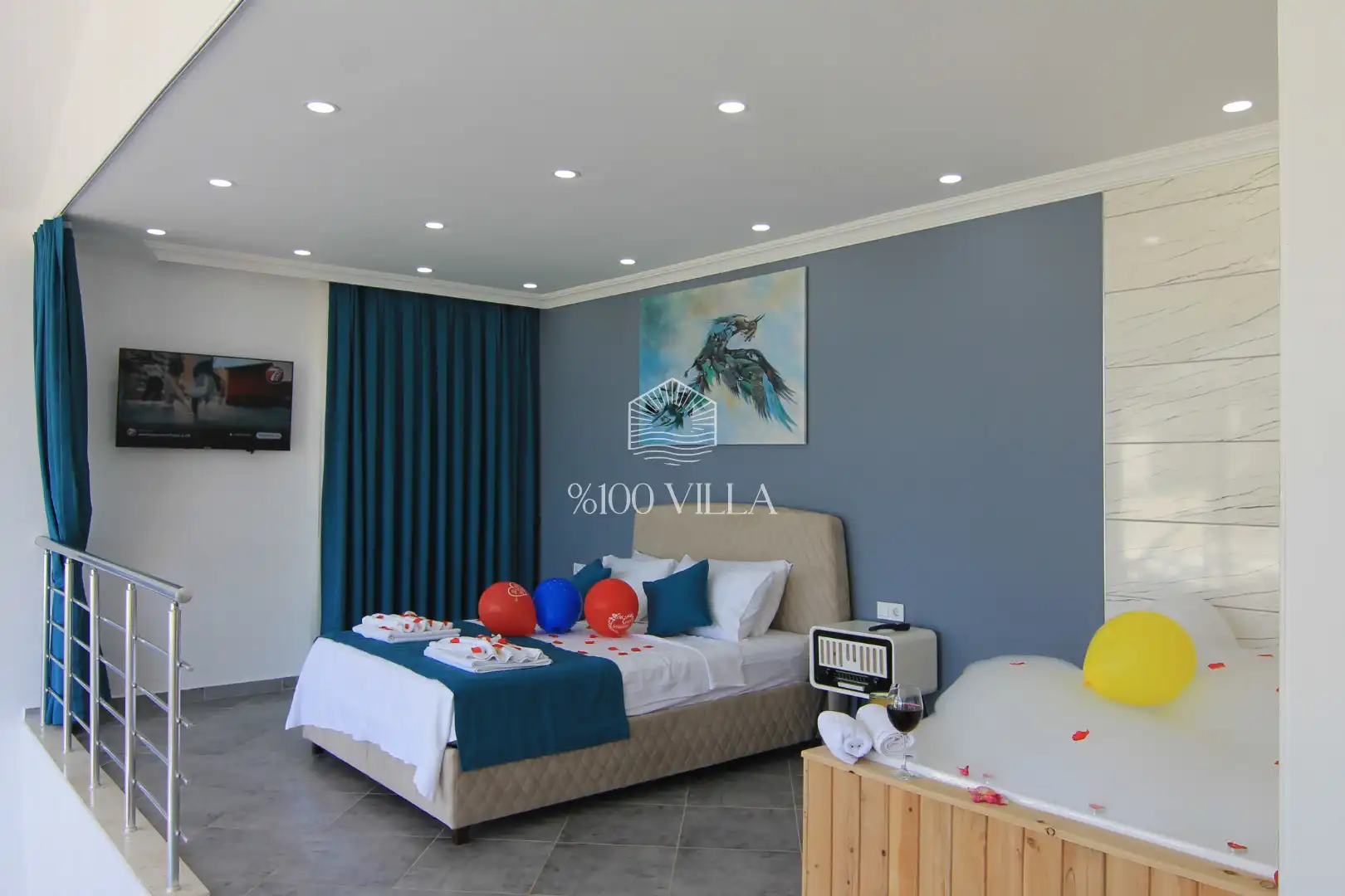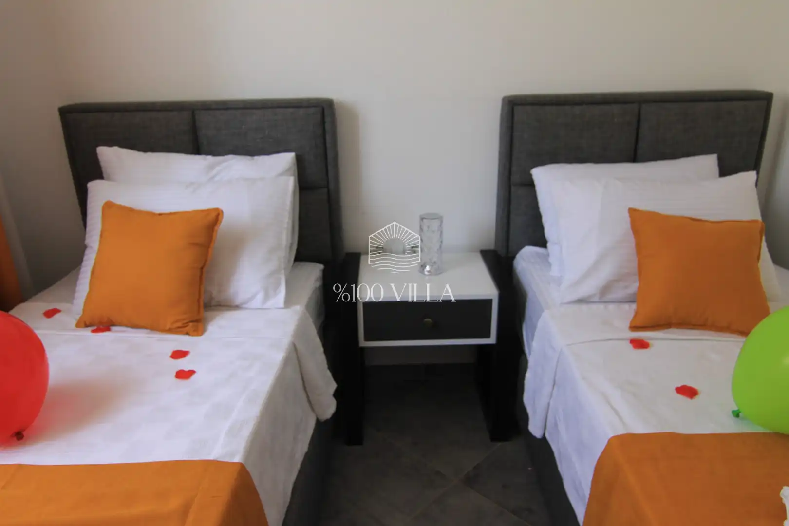 Villa Kocadağ 4 kişilik kapasiteye sahip villada 2 yatak odası yer alıyor. Villanın birer banyosu ve jakuzisi mevcut. Açık mutfağı ve kendine ait bahçesinde bir havuzu var. Mutfağında bulaşık makinesi, buzdolabı, ankastre fırın, tost makinesi ve mutfakta ihtiyaç olan hemen hemen bütün gereçler bulunuyor. Barbekü, masa, sandalyeler, şezlonglar ve şemsiyeler bahçe keyfini sınırsız yaşamanıza imkan tanıyor. Salonunda oturma grubu, televizyon, eşyalar bulunurken, tüm odalar için ayrı klima imkanı var.