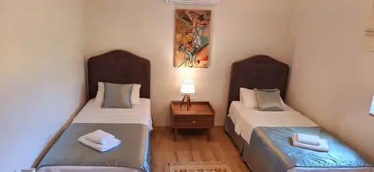 Fethiye´nin en gözde tarihi ve turistik yeri sayılan, eski tarihi Rum evlerine ev sahipliği yapan Kayaköy mevkisinde konumlanmaktadır. Villa Kokpit, yeşillikler arasında geniş bir bahçeye sahiptir. Korunaklı havuz ve bahçe alanı ile dış gözlerden uzak tatilini geçirmek isteyenler ve mutaassıp aileler için oldukça ideal kiralık villa seçenekleri arasında yer almaktadır. Villamız 5 kişilik kapasiteye sahiptir ve 3 yatak odası yer alır. Villanın 2 banyosu mevcut. Açık mutfağı ve kendine ait bahçesinde bir havuzu var. Mutfağında bulaşık makinesi, buzdolabı, ankastre fırın, tost makinesi ve mutfakta ihtiyaç olan hemen hemen bütün gereçler bulunuyor. Barbekü, masa, sandalyeler, şezlonglar ve şemsiyeler bahçe keyfini sınırsız yaşamanıza imkan tanıyor. Salonunda oturma grubu, televizyon, eşyalar bulunurken, tüm odalar için ayrı klima imkanı var.