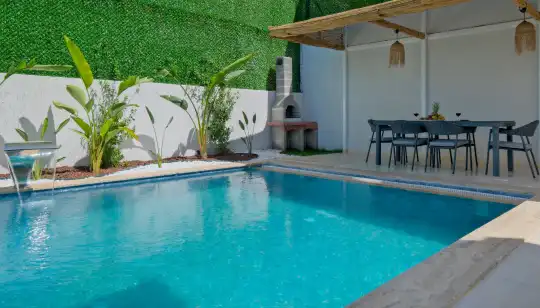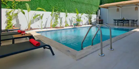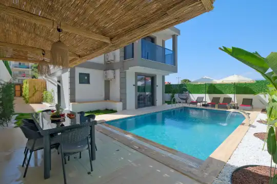 Açık plan mutfağı ve konforlu salonu sayesinde misafirlerin keyifle zaman geçirebileceği iç mekânlar sunan villa, gün boyu güneş alan havuz terasıyla da dinlenme ve eğlenceyi bir arada yaşatır.