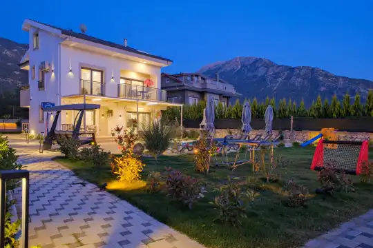 Villamız Fethiye’nin Ovacık mevkiinde,Babadağ ve bölgenin en yüksek dağı olan Mendos Dağı manzaralıdır. Dünyanın en ünlü plajlarından biri olan, mavi bayrak ödüllü Ölüdeniz Plajı, Kıdrak Koyu, Kelebekler Vadisi, Kabak Koyu gibi turistik alanlara yakınlığıyla Villa Kayam, konaklayanlarına kusursuz bir villa deneyimi yaşatıyor. Sizlerde yılın yorgunluğunu, tatilin keyfini Villa Kayam´da en güzel şekilde çıkarabilirsiniz. Toplam 4 yatak odasından oluşmuş, 8 kişi konaklama kapasitesine sahiptir. Geniş aileler ve kalabalık arkadaş grupları için oldukça idealdir. Oldukça şık ve modern bir şekilde döşenmiş olan villamızda misafirlerimiz için herşey düşünülmüştür. Havuz terasında bulunan şezlonglarda güneşlenebilir, bahçe masasında muhteşem yemekler yiyebilir, salıncakta sallanıp keyifli dakikalar geçirebilirsiniz.