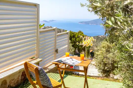 Villa La Mer Azur, Kalkan Kördere mevkiinde konumlanan şirin bahçeli havuzu oldukça korunaklı villamızdır. Müstakil yüzme havuzu dışarıya karşı oldukça korunaklı olduğu için tatilde gözlerden uzak olmak isteyen misafirlerimiz rahat edeceklerdir. Toplam 4 yatak odasından oluşmuş, 8 kişi konaklama kapasitesine sahiptir. Geniş aileler ve kalabalık arkadaş grupları için oldukça idealdir. Oldukça şık ve modern bir şekilde döşenmiş olan villamızda misafirlerimiz için her şey düşünülmüştür. Havuz terasında bulunan şezlonglarda güneşlenebilir, bahçe masasında muhteşem yemekler yiyebilir, salıncakta sallanıp keyifli dakikalar geçirebilirsiniz.