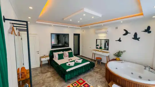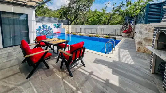 Kalkan Üzümlü köyünün muhteşem doğası içerinde bulunan Villa Lantana, en çok talep gören balayı konseptine göre dizayn edilmiş jakuzili bir balayı villasıdır. Şık ve özenli iç tasarımı ile göz dolduran villamız, korunaklı yapısı sayesinde de gözlerden uzak, rahat bir tatil geçirmek isteyen misafirlerimiz için tüm detaylar düşünülerek hazırlanmıştır. Havuz terasında keyifli bir tatil geçirebilmeniz için özel oturma alanı, salıncak ve şezlonglar yer alır.