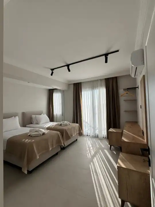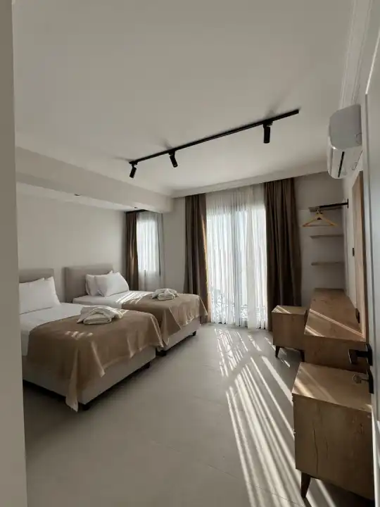 4. **Yatak Odası:** 2 adet tek kişilik yatak, özel banyo/WC ve balkon.