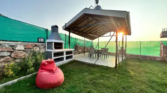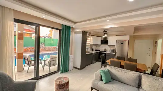 Villada bulunan özel yüzme havuzu ve jakuzi, tatilinize hem dinlendirici hem de eğlenceli bir atmosfer katarken, geniş ve ferah bahçe alanı günün her saatinde keyifli vakit geçirmenize olanak tanır. Modern ve şık detaylarla dekore edilmiş iç mekânlar, konforlu bir konaklama için ihtiyaç duyabileceğiniz tüm ekipmanlarla donatılmıştır.