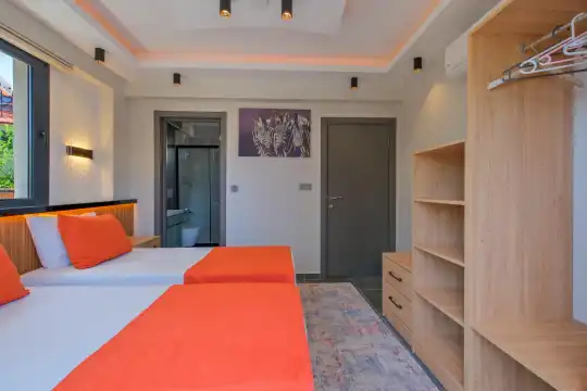 Fethiye Karaçulha mevkiinde yer alan Villa Aslan 1, 4 kişi konaklama kapasitesine sahiptir. 2 adet yatak odasına sahip olan villamızın tek yatak odasında şık bir de jakuzi yer almaktadır.