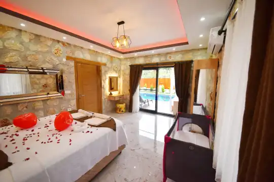 Villa Love Kalkan Akbel mevkiinde konumlu , 2 yatak odalı 4 kişi konaklama kapasiteli havuz terası korunaklı  konseptte sahip tatil villası seçeneklerimizdendir. Villamızın yeşillikler içerisindeki bahçesinde çocuklu misafirlerimiz için mini oyun parkı yer almaktadır. Bahçesinde bulunan jakuzisi ile villamızda tatiliniz süresince dinlenme ve eğlenme fırsatına sahipsiniz.