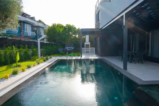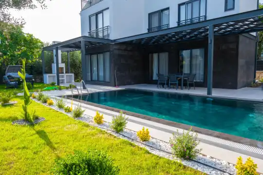 Hisarönü'nün kalbinde, doğanın kucakladığı özel bir konumda yer alan Villa Luna Vista 1, modern yaşamın sunduğu tüm konforu ve lüksü bir arada sunuyor. Bu villa, 4 yatak odası ve 4 banyosu ile 8 kişilik konaklama kapasitesine sahip olup, geniş aileler ve arkadaş grupları için mükemmel bir tercih. Hem şık tasarımı hem de sağladığı olanaklarla misafirlerine unutulmaz bir tatil deneyimi vaat ediyor.