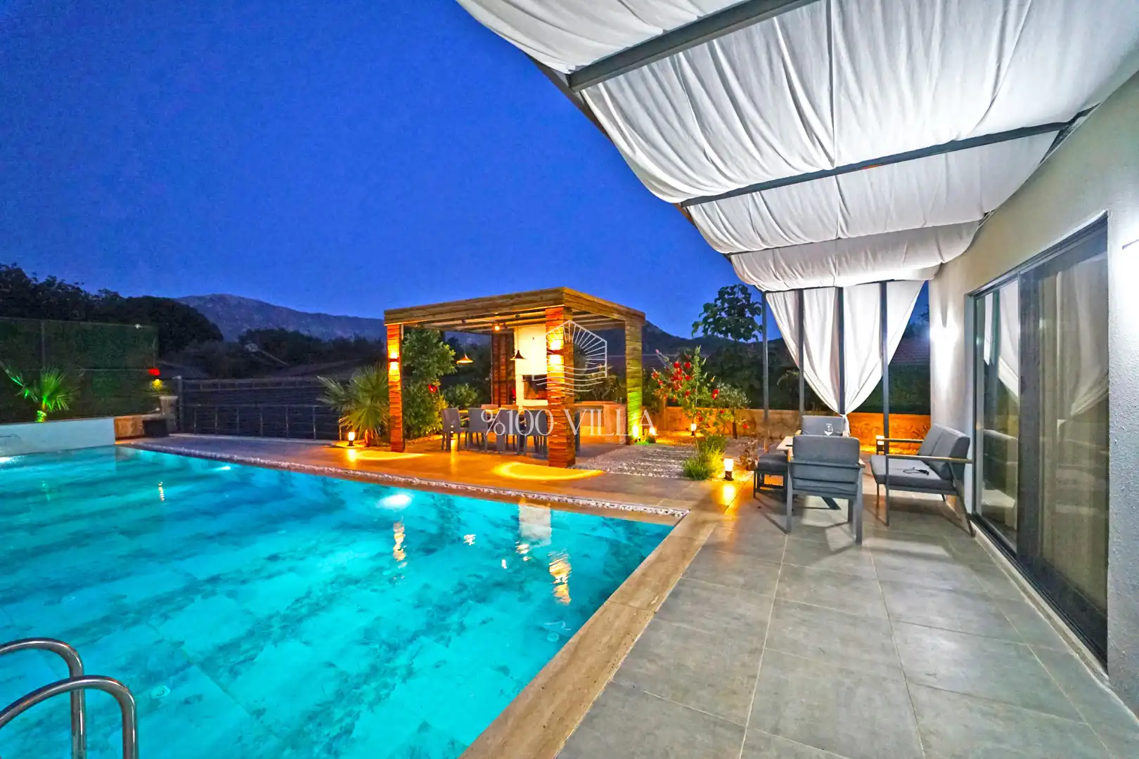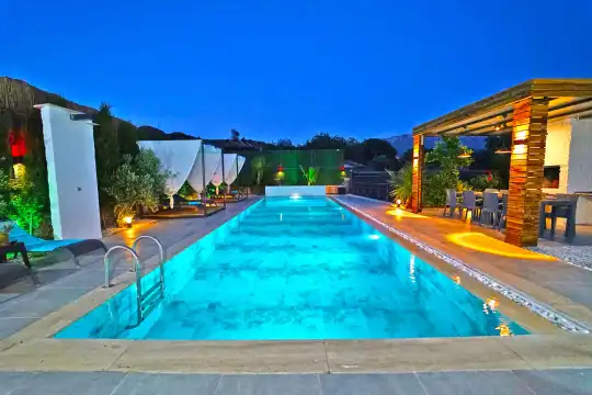 Villa Luxury, lüks konaklama olanakları sunan bir tatil villasıdır. Genellikle yüksek standartlarda konfor ve hizmet sunarak misafirlerine unutulmaz bir deneyim yaşatmayı hedefler. Tatil villamızda 4 yatak odası, 4 banyo, açık mutfak salon ve ortak lavabo şeklinde dizayn edilmiştir.
