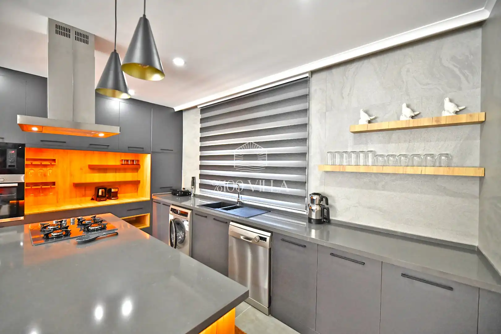 Tasarım: Modern ve şık bir mimariye sahip olan villa, zarif iç mekanları ve estetik dış tasarımıyla dikkat çeker.