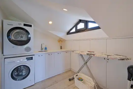 **Mutfak:** Donanımlı Amerikan mutfağında buzdolabı, bulaşık makinesi, fırın, mikrodalga ve çatal-bıçak seti bulunmaktadır.