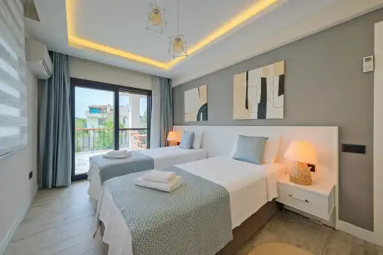 4. **Yatak Odası:** 2 adet tek kişilik yatak, özel banyo/WC ve balkon.