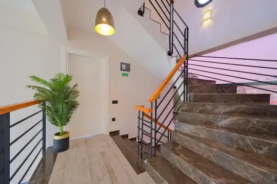 2. **Yatak Odası:** 1 adet çift kişilik yatak, jakuzi, klima ve ortak kullanımlı geniş teras.