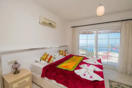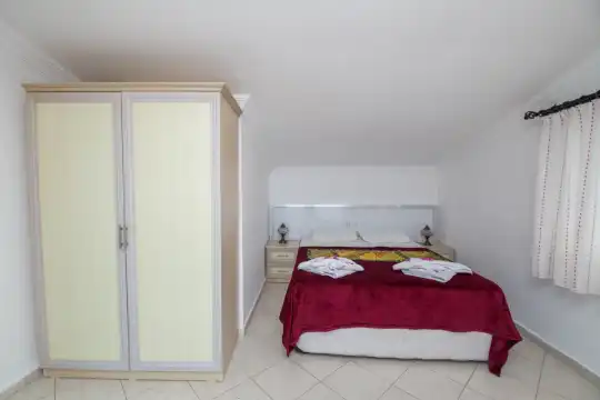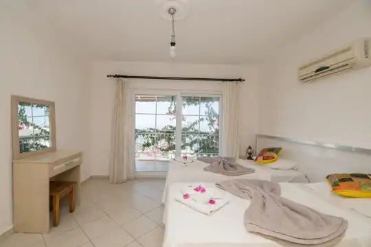 Modern iç tasarımı, özel havuzu ve muhteşem manzarasıyla dikkat çeken villamız, 3 yatak odası ve 3 banyosu ile 6 kişilik konaklama kapasitesine sahiptir. Her odada klima, elbise dolabı, makyaj masası ve komodin gibi detaylar yer almakta olup, tüm yatak odaları özel banyoludur. Konfor ve mahremiyet ön planda tutulmuştur.