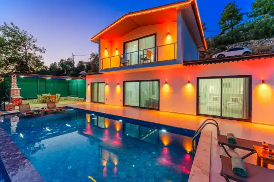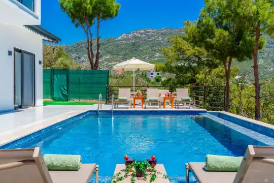 Villa Mavera, Antalya’nın gözde tatil bölgelerinden Kalkan İslamlar mevkiinde konumlanan, doğayla iç içe, sakinlik ve huzur arayanlar için ideal bir kiralık villadır. Özellikle balayı çiftleri ve kalabalık olmayan aile grupları için uygun olan bu özel villa, kuş sesleri eşliğinde izole bir tatil imkânı sunar.