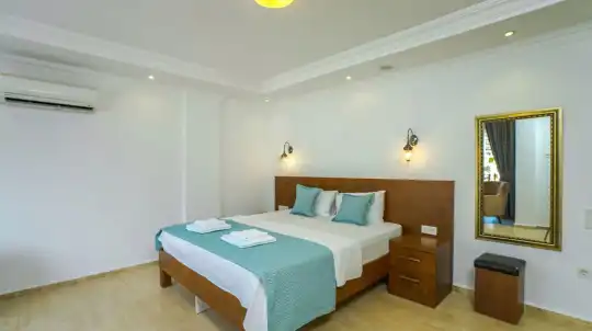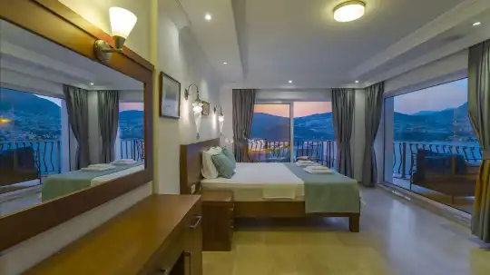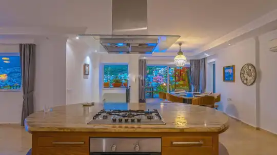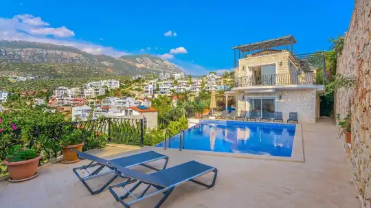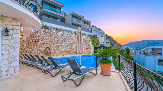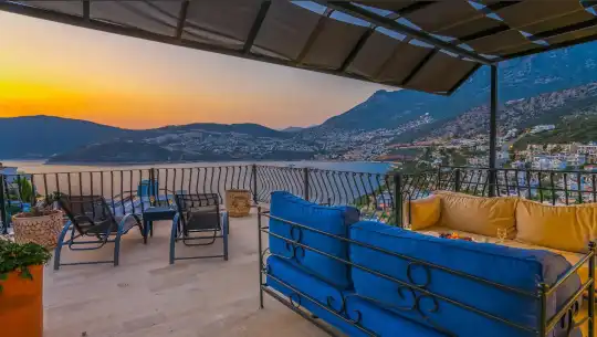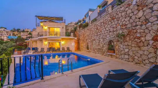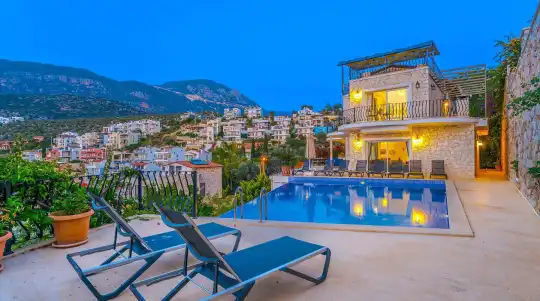 Kalkan Kışla mevkiinde yer alan Villa Mavna, 5 yatak odası ve 10 kişilik konaklama kapasitesi ile büyük aileler ve arkadaş grupları için ideal bir tatil seçeneğidir. Muhteşem deniz ve günbatımı manzarası ile her anınızı özel kılacak olan bu villa, merkezi konumu ve denize yakınlığı ile ulaşım kolaylığı sağlar. Modern mutfağı, eksiksiz araç-gereçleri ve konforlu eşyaları sayesinde kendinizi evinizde gibi hissedecek ve rahat bir tatil geçirebileceksiniz.