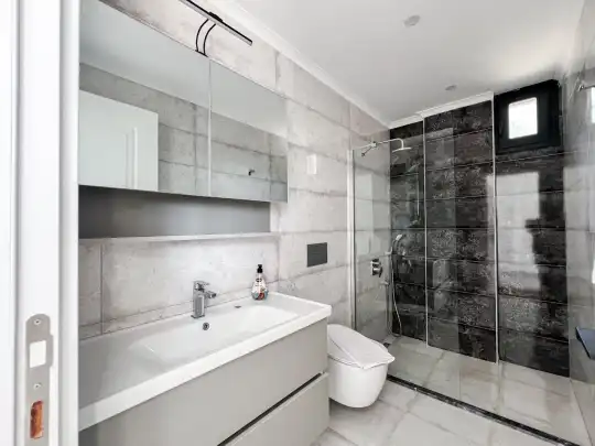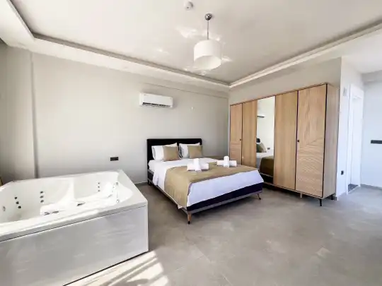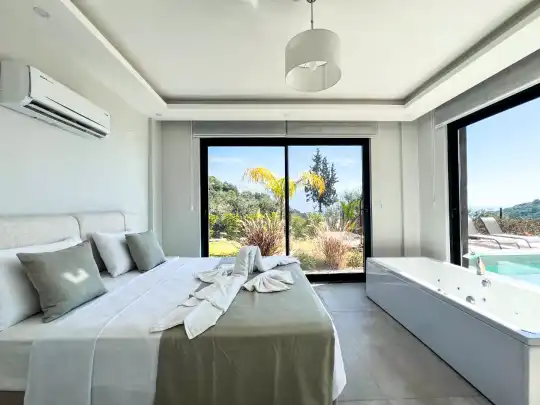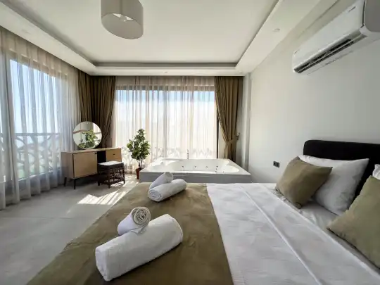 Fethiye´nin en gözde tarihi ve turistik yeri sayılan, eski tarihi Rum evlerine ev sahipliği yapan Kayaköy mevkisinde konumlanmaktadır. Yeşillikler arasında geniş bir bahçeye sahiptir. Bahçe alanı ile dış gözlerden uzak tatilini geçirmek isteyenler ve mutaassıp aileler için oldukça ideal kiralık villa seçenekleri arasında yer almaktadır. Villamız 6 kişilik kapasiteye sahiptir ve 3 yatak odası yer alır. Villanın 3 banyosu ve jakuzisi mevcut. Açık mutfağı ve kendine ait bahçesinde bir havuzu var. Mutfağında bulaşık makinesi, buzdolabı, ankastre fırın, tost makinesi ve mutfakta ihtiyaç olan hemen hemen bütün gereçler bulunuyor. Barbekü, masa, sandalyeler, şezlonglar ve şemsiyeler bahçe keyfini sınırsız yaşamanıza imkan tanıyor. Salonunda oturma grubu, televizyon, eşyalar bulunurken, tüm odalar için ayrı klima imkanı var.