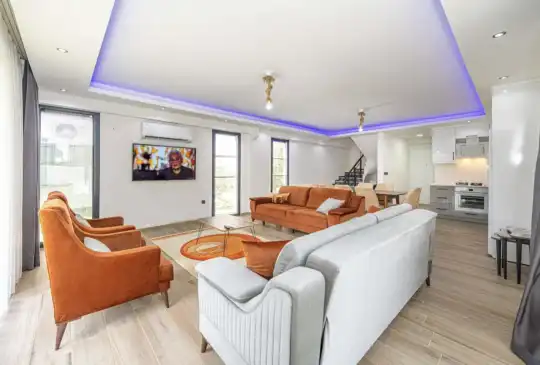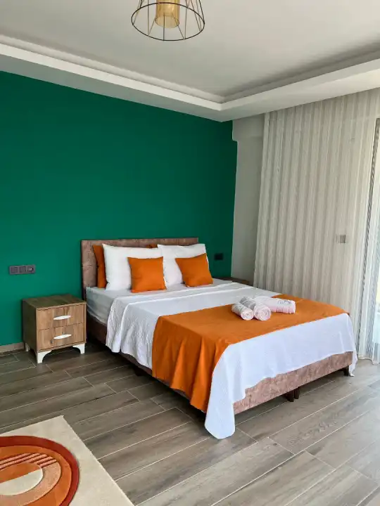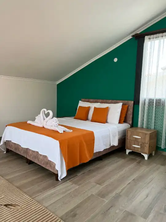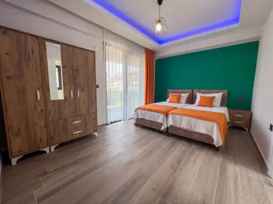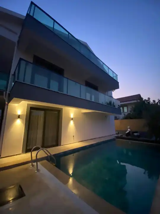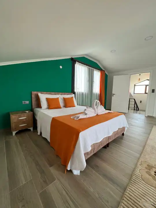 Toplam 3 yatak odasından oluşmuş, 6 kişi konaklama kapasitesine sahiptir. Geniş aileler ve kalabalık arkadaş grupları için oldukça idealdir. Oldukça şık ve modern bir şekilde döşenmiş olan villamızda misafirlerimiz için her şey düşünülmüştür. Havuz terasında bulunan şezlonglarda güneşlenebilir, bahçe masasında muhteşem yemekler yiyebilir, salıncakta sallanıp keyifli dakikalar geçirebilirsiniz.