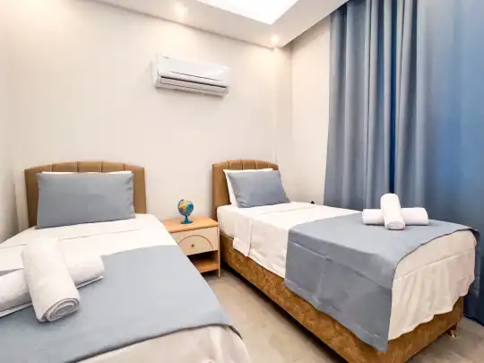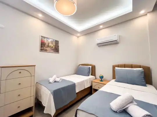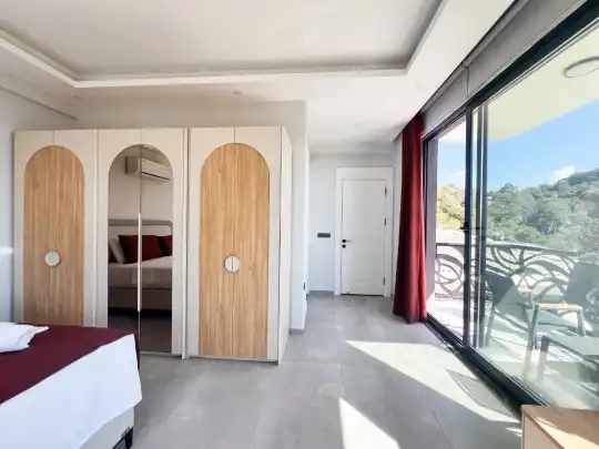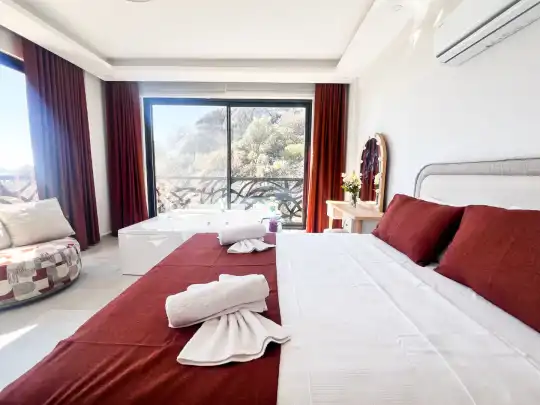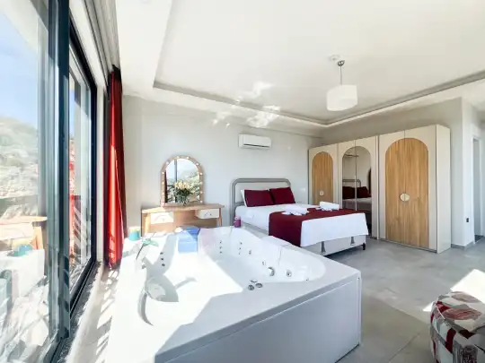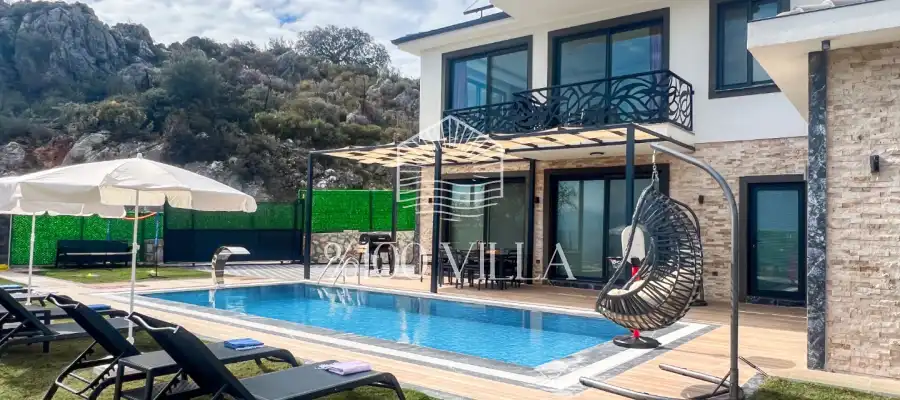 Fethiye´nin en gözde tarihi ve turistik yeri sayılan, eski tarihi Rum evlerine ev sahipliği yapan Kayaköy mevkisinde konumlanmaktadır. Yeşillikler arasında geniş bir bahçeye sahiptir. Bahçe alanı ile dış gözlerden uzak tatilini geçirmek isteyenler ve mutaassıp aileler için oldukça ideal kiralık villa seçenekleri arasında yer almaktadır. Villamız 6 kişilik kapasiteye sahiptir ve 3 yatak odası yer alır. Villanın 3 banyosu ve jakuzisi mevcut. Açık mutfağı ve kendine ait bahçesinde bir havuzu var. Mutfağında bulaşık makinesi, buzdolabı, ankastre fırın, tost makinesi ve mutfakta ihtiyaç olan hemen hemen bütün gereçler bulunuyor. Barbekü, masa, sandalyeler, şezlonglar ve şemsiyeler bahçe keyfini sınırsız yaşamanıza imkan tanıyor. Salonunda oturma grubu, televizyon, eşyalar bulunurken, tüm odalar için ayrı klima imkanı var.
