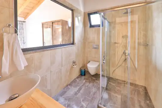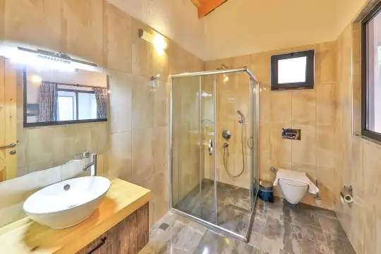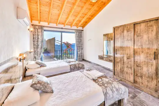 Villamız, toplam 3 yatak odası ve 6 kişilik konaklama kapasitesine sahiptir. İki odada çift kişilik yatak, bir odada ise iki adet tek kişilik yatak yer almaktadır. Her odada özel banyo ve tuvalet bulunmakta olup, konforlu bir konaklama için tüm detaylar düşünülmüştür.