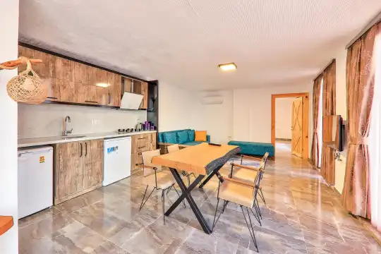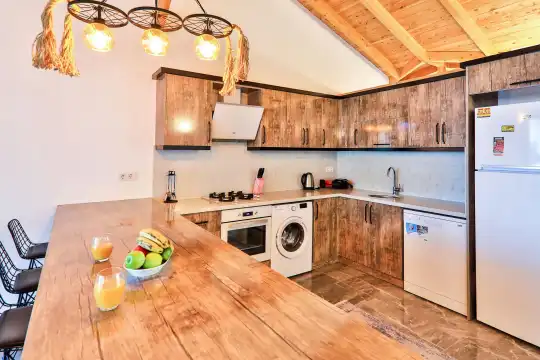 Tam donanımlı mutfak (tabak, bardak, çatal-bıçak takımı, tencere vb.)