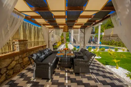 Fethiye Ovacık mevkiinde bulunan villa, 4 yatak odasıyla 8 kişilik konaklama kapasitesi sunmaktadır. Doğa içerisinde konumlanan, genişliği ile göz dolduran villa, kalabalık aile ve arkadaş grupları için uygundur.