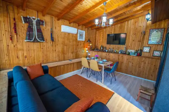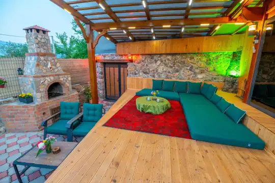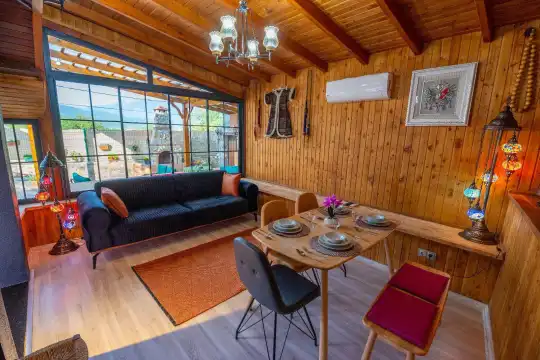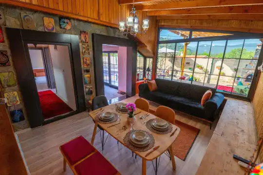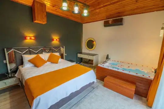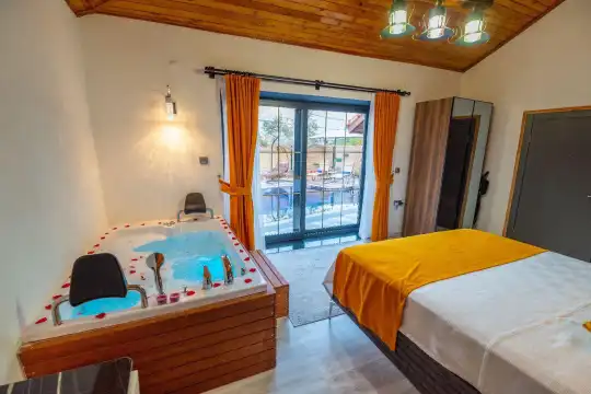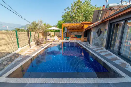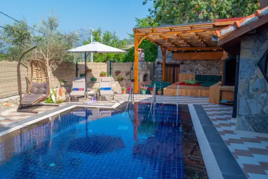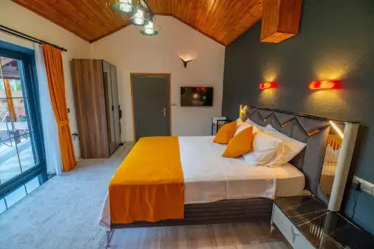 Villa Mustafa Evi, Fethiye Kayaköy mevkiindeyer alan özel havuzlu ve havuzu tam korunaklı villamızdır. Son derece modern iç dizaynı ile dikkat çeken villamız, doğa içerisindeki sakin konumu ile de sizlere unutulmaz bir tatil deneyimi yaşatacaktır. Villamızın bulunduğu konum Fethiye Kayaköy'dedir. Kayaköy eski Rum evlerinin olduğu tarihi bir köydür. Buraya geldiğinizde mutlaka bu Rum evlerini gezmenizi tavsiye ederiz. Kayaköy'de gezilip görülecek yerler arasında büyük ve küçük kilise ile on dört şapel bulunmaktadır. Küçük kilise yolundan yalnızca denizden veya yürüyerek ulaşımın mümkün olduğu Soğuk Su koyuna yaklaşık olarak 40 dakikada gidilebilmektedir. 1 yatak odalı 2 kişilik balayı çiftlerimiz için dizayn edilmiştir.